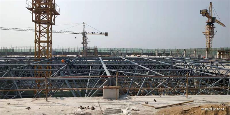 網格尺寸要與屋面材料相適應,網架上直接鋪設鋼筋混凝土板時,網格尺寸不宜過大,一般不超過3m,否則安裝困難